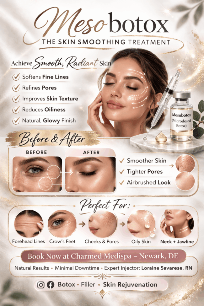 If you are looking for a softer, more natural way to smooth fine lines and improve skin texture, mesobotox is becoming one of the most requested treatments in Newark, Delaware. At Charmed Medispa, nurse injector Loraine Savarese offers advanced mesobotox treatments designed to deliver subtle, refreshed results without the “frozen” look. What is Mesobotox Mesobotox,…